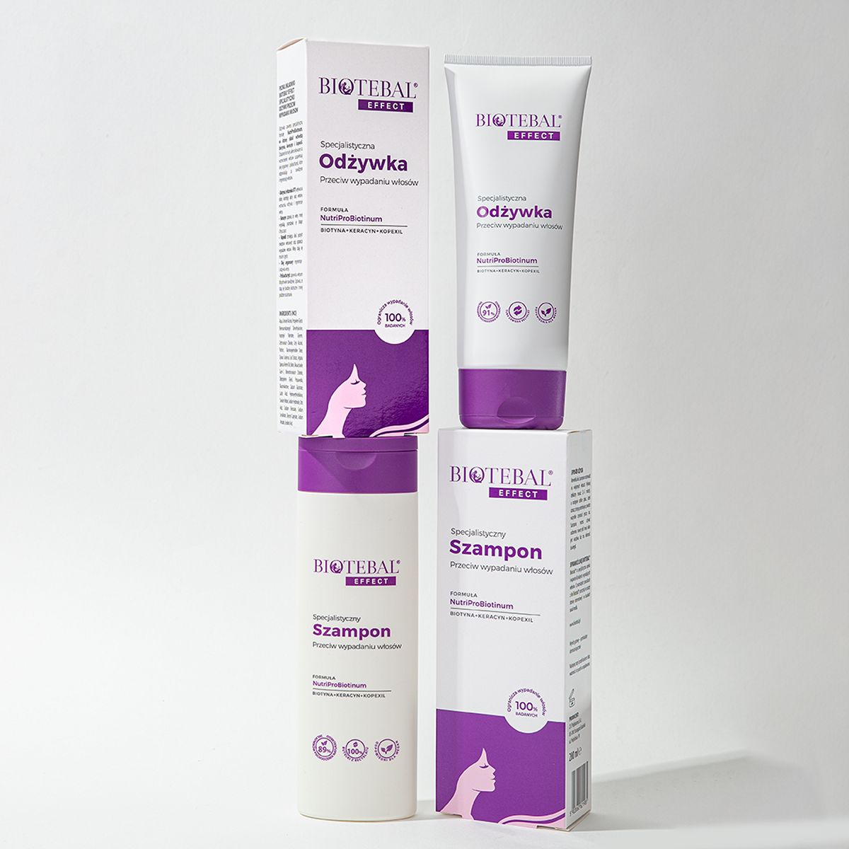 Dla włosów ważne są substancje, które zadbają o ich odbudowę i nawilżenie. Dlatego tak istotny jest wybór odżywki. Kosmetyk ten bowiem wypełnia ubytki w strukturze włosów, a także ułatwia ich rozczesywanie. Odżywka tworzy również powłokę, która chroni, rewitalizuje i zmiękcza włosy. Pamiętaj, by nakładać ją po umyciu na całą długość włosów i skórę głowy na 5-10 minut, a następnie spłukać wodą. W specjalistycznej pielęgnacji ważne jest stosowanie kosmetyków z tej samej linii – zwiększa to skuteczność kuracji przy regularnym stosowaniu. Jeżeli zatem zdecydujesz się na szampon Biotebal EFFECT, sięgnij również po odżywkę z tej samej serii. Możesz jej używać codziennie, nawet mając wrażliwą i skłonną do alergii skórę. Przy regularnym stosowaniu kosmetyku zauważysz, że włosów wypada mniej.