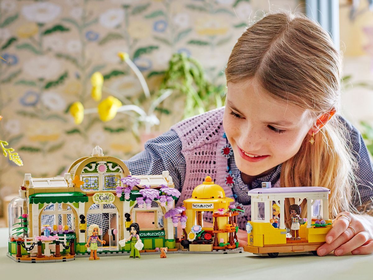 Zestaw LEGO® Friends Zielona kawiarnia i kwiaciarnia to prawdziwa gratka dla dziewięciolatek i starszych dzieci, które uwielbiają kwiaty, tworzenie i odgrywanie ról. W środku czeka czternaście przestrzeni pełnych atrakcji – od stoisk z bukietami i roślinami w doniczkach, przez kawiarnię z ogródkiem i kuchnią z ekspresem do kawy, po uroczy tramwaj, którym bohaterowie mogą podróżować po mieście.